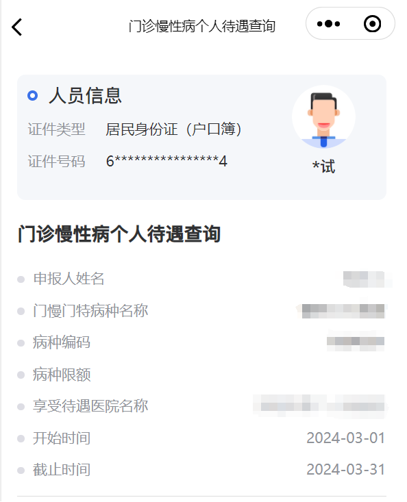 进入功能后显示患者当前能享受的慢病待遇信息。