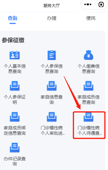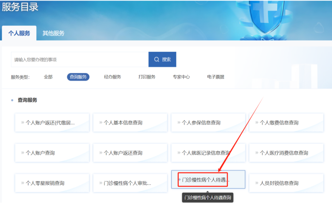 2、电脑端:河南医保公共服务平台→服务目录→个人服务→查询服务→门诊慢性病个人审批进度查询。在此功能也可以直接查询患者当前可以享受慢性病待遇的病种。(不仅限于网上申报的慢性病)