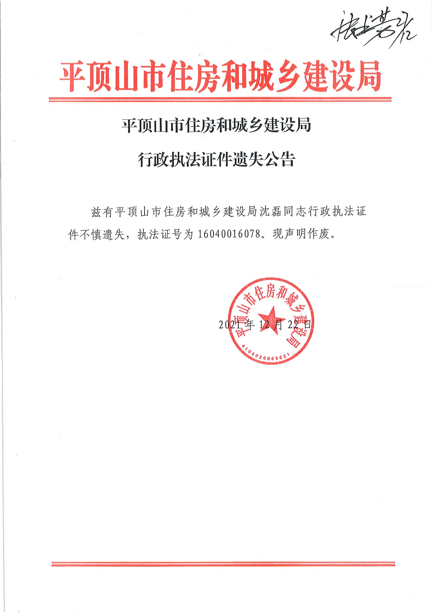 2026世界杯买球app住房和城乡建设局行政执法证件遗失公告