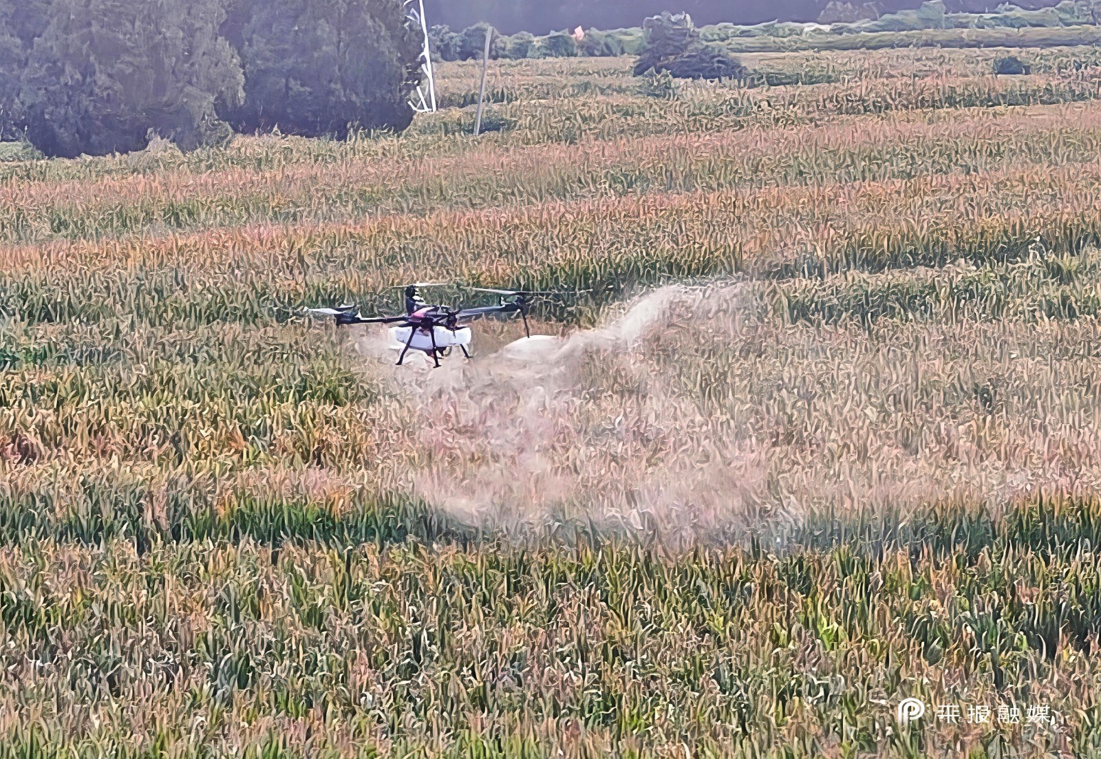 时下正值秋作物生长关键期,湛河区农业农村和水利局组织开展无人机飞防作业,对辖区12000余亩(1亩≈666.67平方米)水稻、玉米进行杀虫灭害,以科技助力作物健康生长,为秋粮稳产丰产筑牢保障。