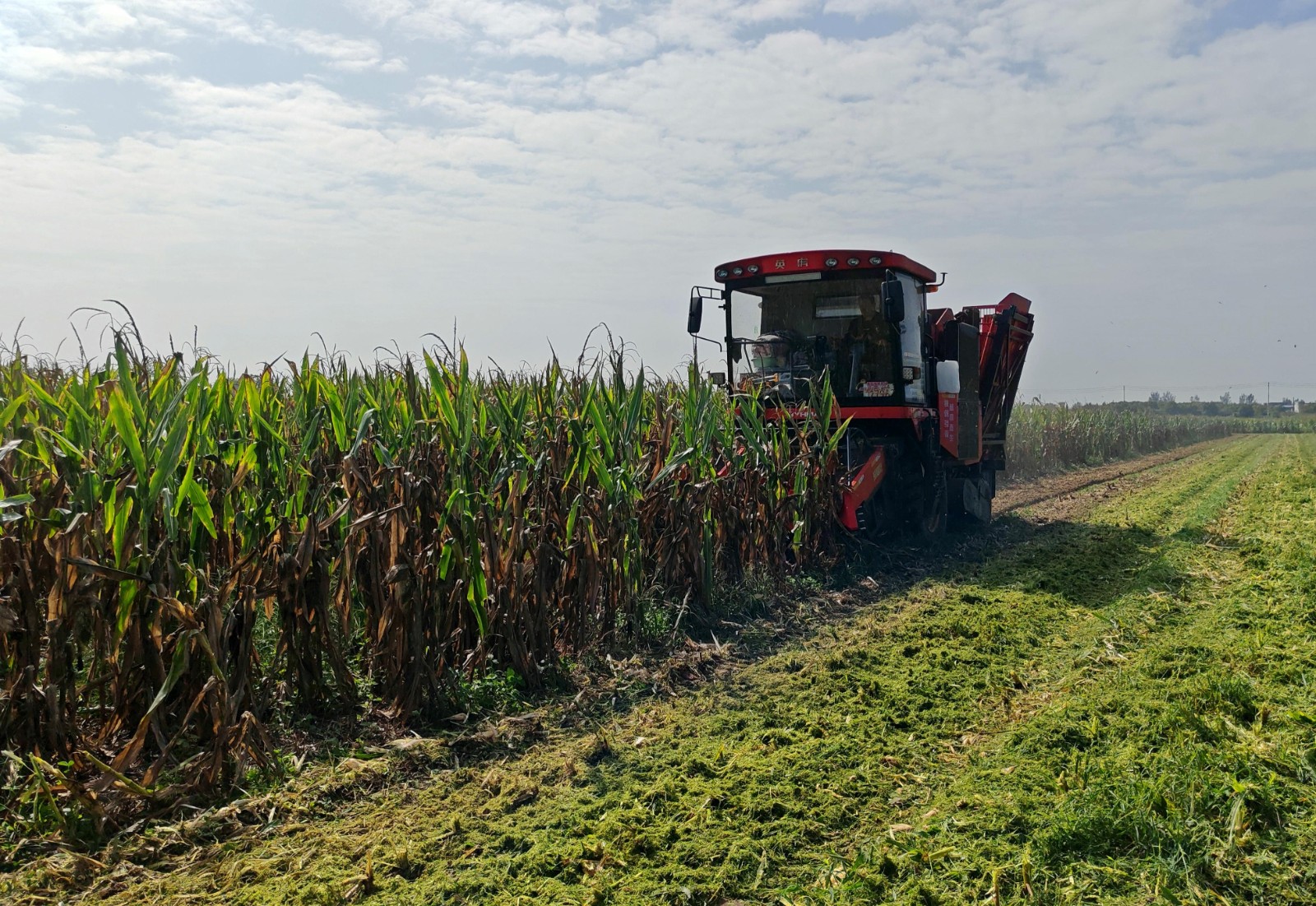 9月9日,一辆收割机在湛河区河滨街道褚庄村附近的耕地内收割玉米。