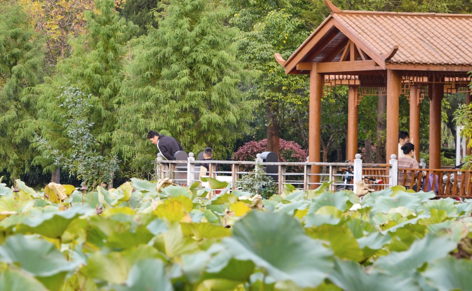 湖水倒映秋荷,叶影轻摇,每一片荷叶都似承载着季节的故事,无声诉说着从盛夏到深秋的更迭之美。眼下,该公园的秋荷正处于最佳观赏期,无需刻意寻觅,转角便能邂逅这份“秋日限定”美。