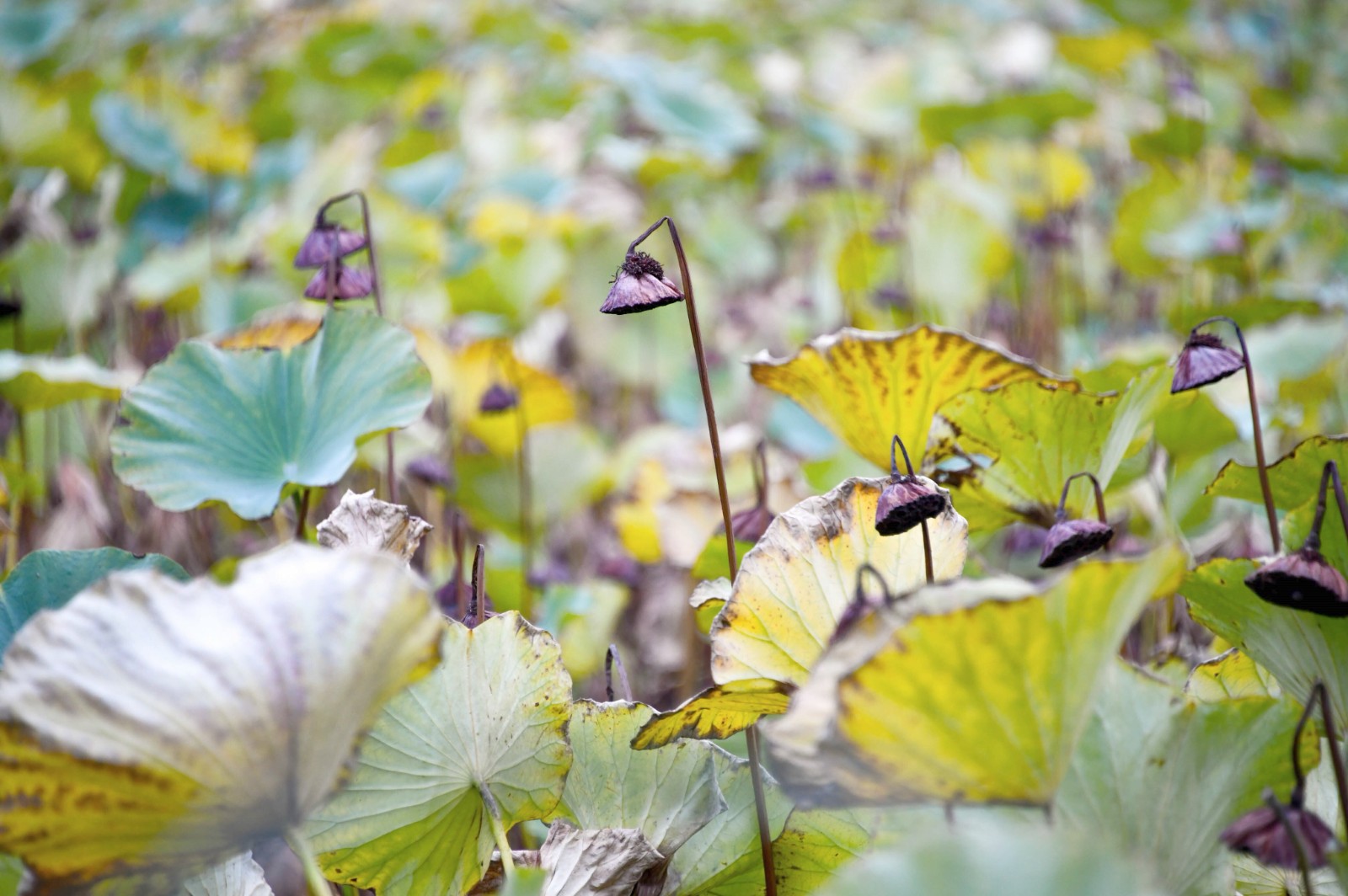 10月19日,记者走进白鹭洲国家城市湿地公园,人工湖里的秋荷正绽放独特魅力。盛夏里的连片翠绿已褪去热烈,变成黄绿交织的色彩,叶片边缘虽染秋意,却依旧挺拔地舒展于水面。