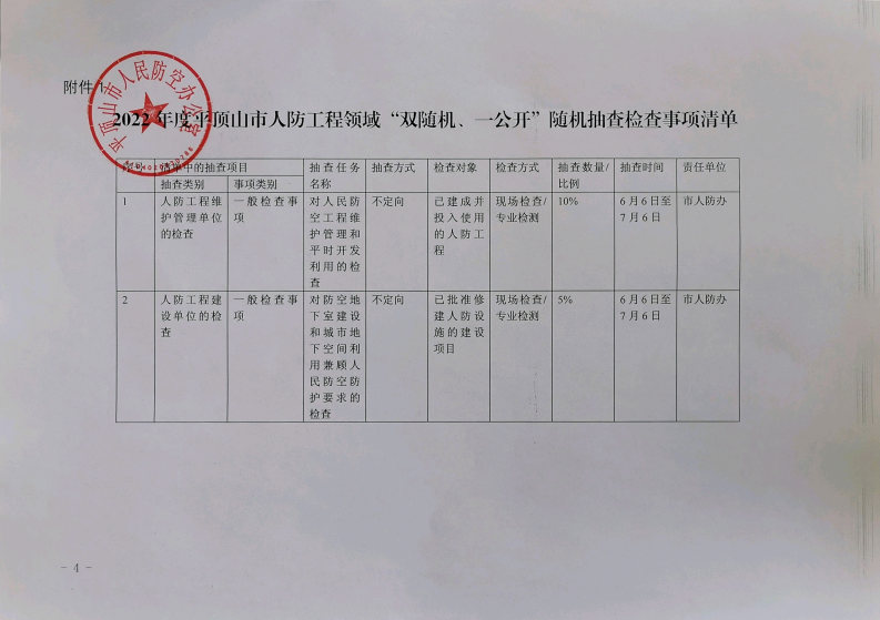世界杯app下载人民防空办公室2022年随机抽查事项清单