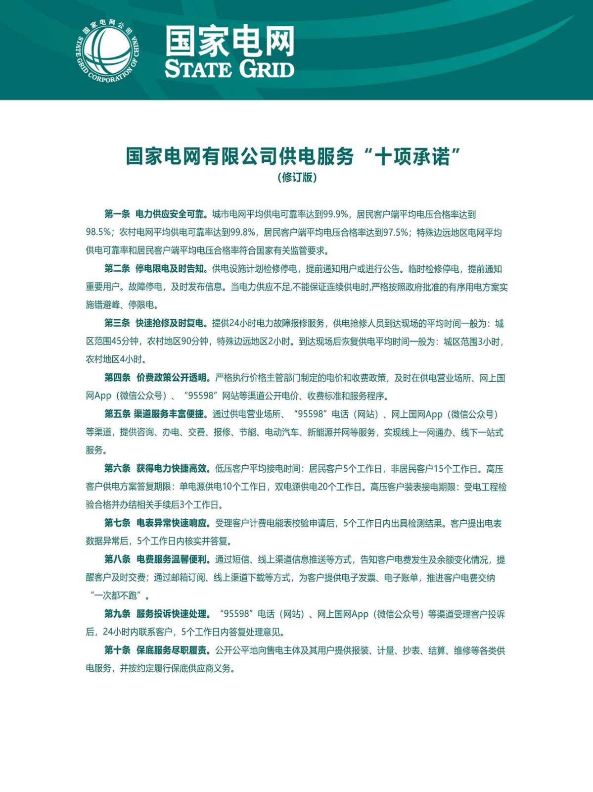 平顶山供电公司服务标准及承诺