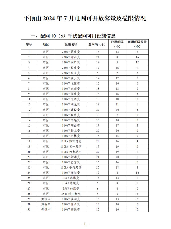 平顶山2024年7月电网可开放容量及受限情况