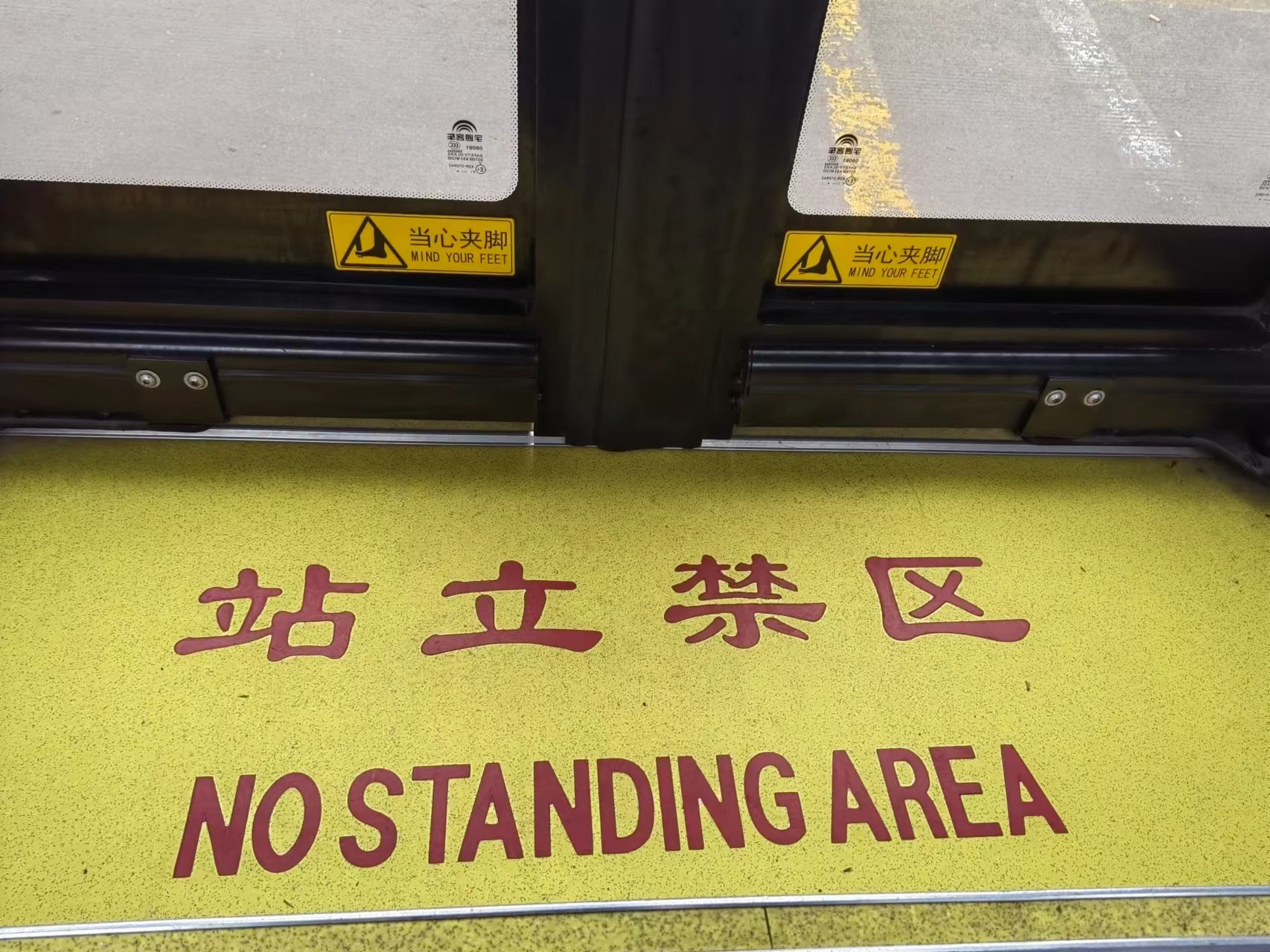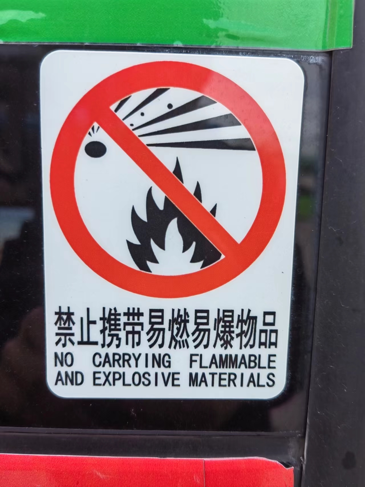 安全警示标志等安全防范信息:包括禁止三品上车,禁止抽烟,系好安全带,禁止站立区,禁止倚靠等标志。